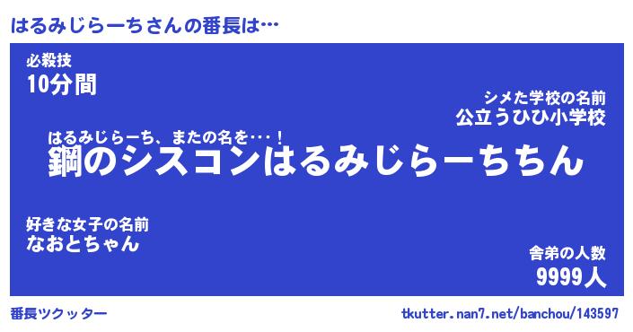 | 伝説のあだ名 | 『封印されしスナイパーはるみじらーち』 |