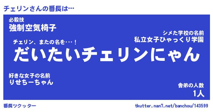 | 意味不明あだ名 | 『ペロリンチェリン』『永久保存チェリン』 |