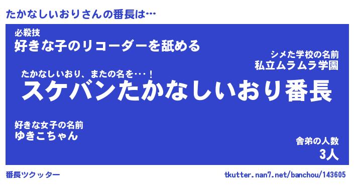 | 2回繰り返すあだ名 | 『たかたか』『たたかか』『おやおや』 |