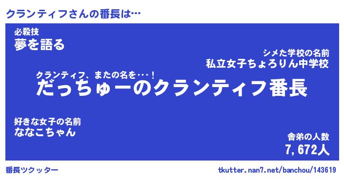 | 恥ずかしいあだ名 | 『プリティークランティフ』『クラっちょ』 |