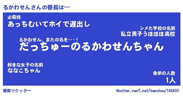 | 意味不明あだ名 | 『ペロリンるかわせん』 |