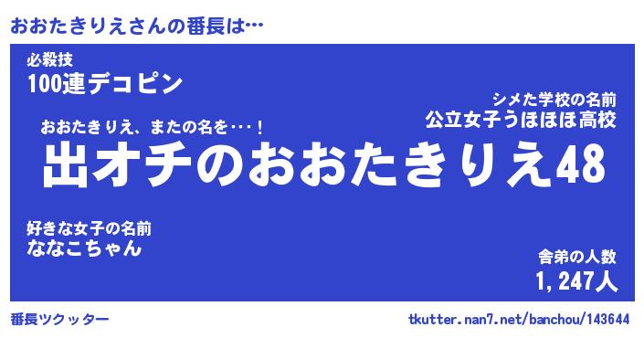 | ヒーロー風カッコイイあだ名 | 『スーパーオオタキリエ』『幻影騎士オオ』 |