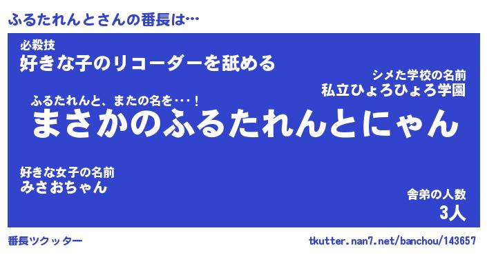 | ヘコむあだ名 | 『ふるもー』『なまこ酢』『ふるを』 |