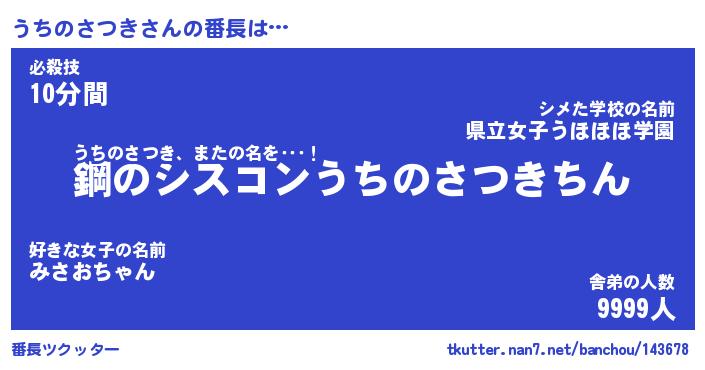 | ヒーロー風カッコイイあだ名 | 『スーパーウチノサツキ』『天弓騎士ウチ』 |