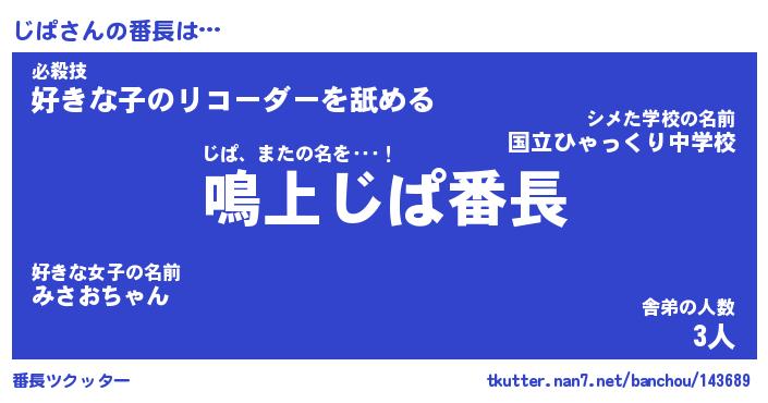 | ツイッター | じぱさんのツイッターID『namakemono_idle』 |