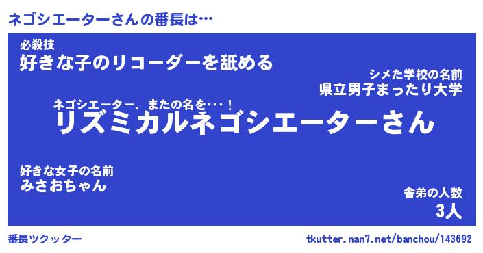 | ヘコむあだ名 | 『ネゴもー』『なまこ酢』『ネゴ太郎』 |