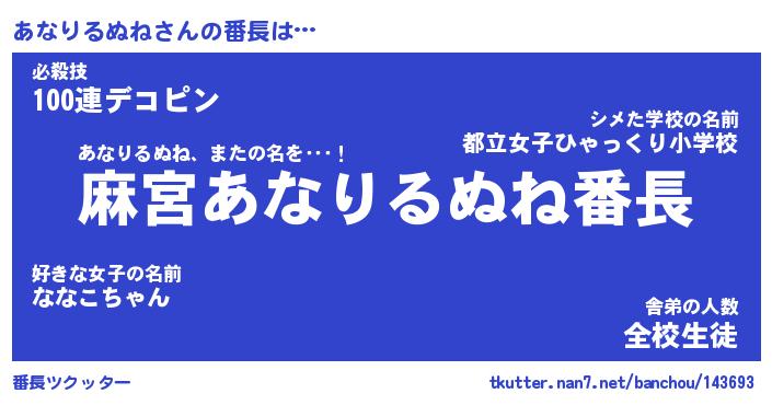 | 肩書あだ名 | 『あなりるぬね店長』『あなりるぬね塾長』 |