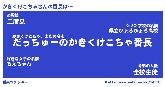 | 肩書あだ名 | 『かきくけこちゃ店長』 |