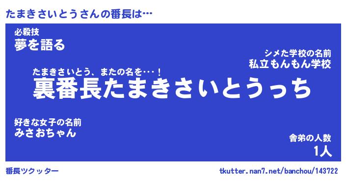 | ヘコむあだ名 | 『たまにゅー』『なまこ酢』 |