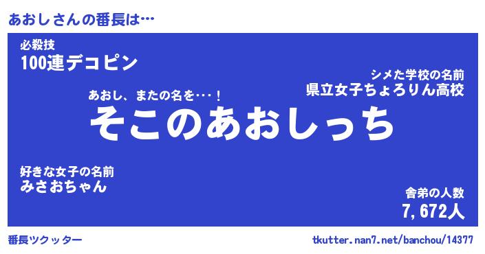 | 意味不明あだ名 | 『ペロリンあおし』『あおしフォーエバー』 |