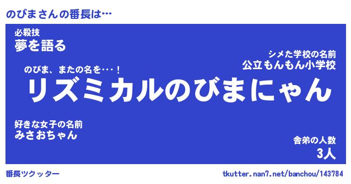 | ヒーロー風カッコイイあだ名 | 『スーパーノビマ』『ウルトラのびまマン』 |