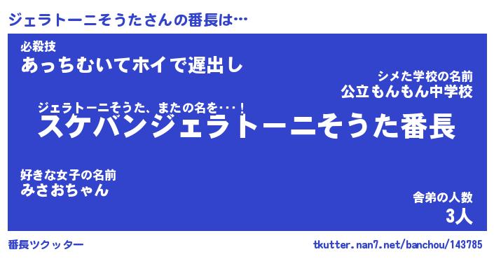 | ヒーロー風カッコイイあだ名 | 『スーパージェラトーニソウタ』 |