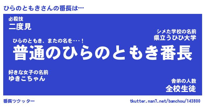 | ヒーロー風カッコイイあだ名 | 『スーパーヒラノトモキ』『暗黒騎士ヒラ』 |