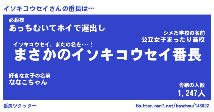 | 肩書あだ名 | 『イソキコウセイ社長』 |