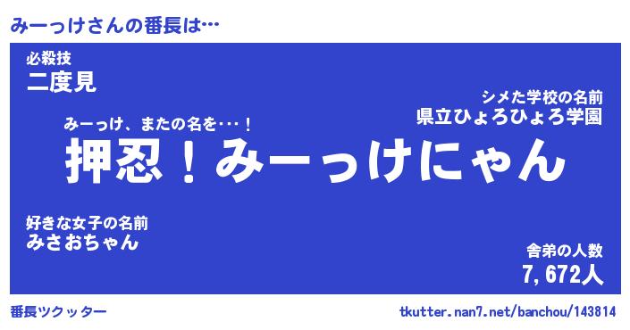 | 肩書あだ名 | 『みーっけ店長』『みーっけ大統領』 |