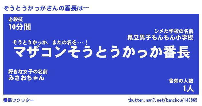| ヘコむあだ名 | 『そうもー』『つくし』『そう太郎』 |