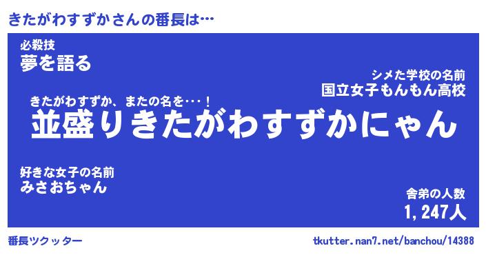 | ヒーロー風カッコイイあだ名 | 『スーパーキタガワスズカ』 |