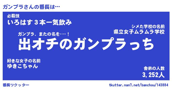 | ポケモン風あだ名 | 『ガンチュウ』『ガンプダネ』 |