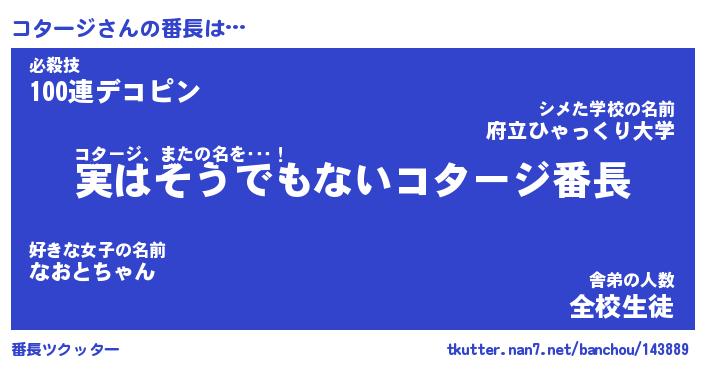 | 意味不明あだ名 | 『ペロリンコタージ』『永久保存コタージ』 |