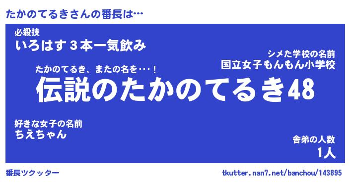 | 肩書あだ名 | 『たかのてるき店長』『たかのてるき校長』 |