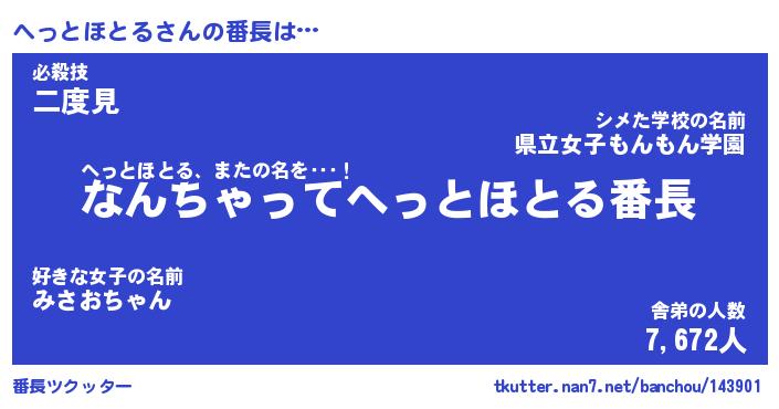 | 伝説のあだ名 | 『伝説のスナイパーへっとほとる』 |