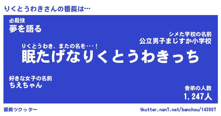| 男性向けラノベタイトル風あだ名 | 『リクトウワキアートオンライン』 |
