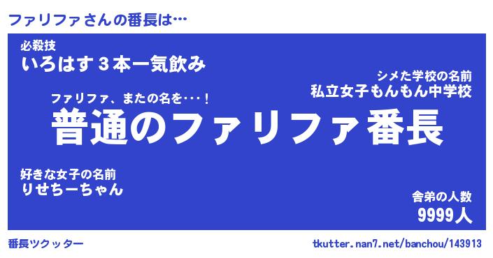 | 肩書あだ名 | 『ファリファ御曹司』『ファリファ校長』 |