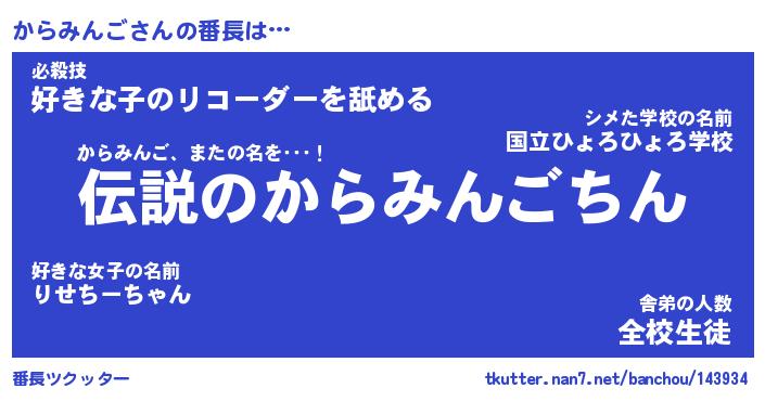 | 肩書あだ名 | 『からみんご社長』『からみんご総理大臣』 |
