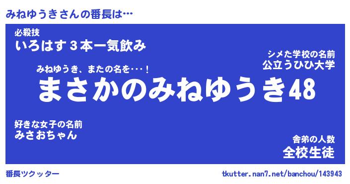 | ファンタジー風あだ名 | 『ミネフェル』『エターナルミネユウキー』 |