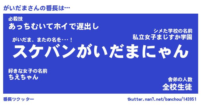 | 意味不明あだ名 | 『ペロリンがいだま』『永久保存がいだま』 |