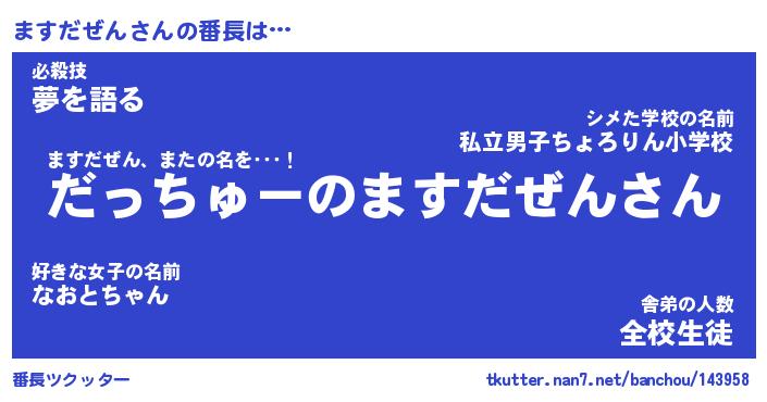 | 肩書あだ名 | 『ますだぜん店長』『ますだぜん国家主席』 |