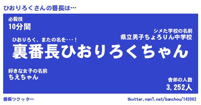 | ヒーロー風カッコイイあだ名 | 『スーパーヒオリロク』『幻影騎士ヒオ』 |