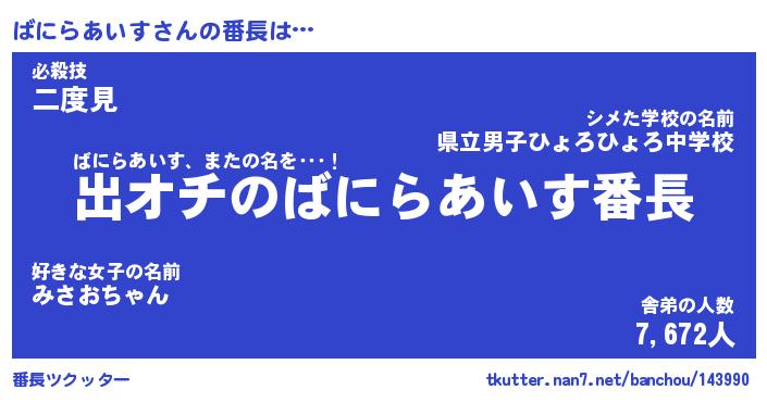 | ヘコむあだ名 | 『ばにもー』『レバニラ』『ばにお』 |