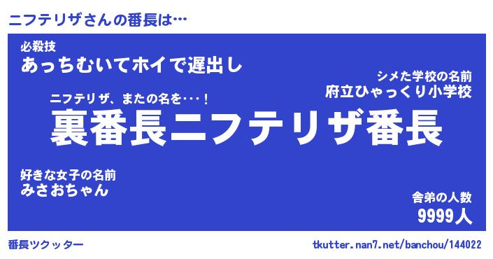 | ヒーロー風カッコイイあだ名 | 『スーパーニフテリザ』『天弓騎士ニフ』 |