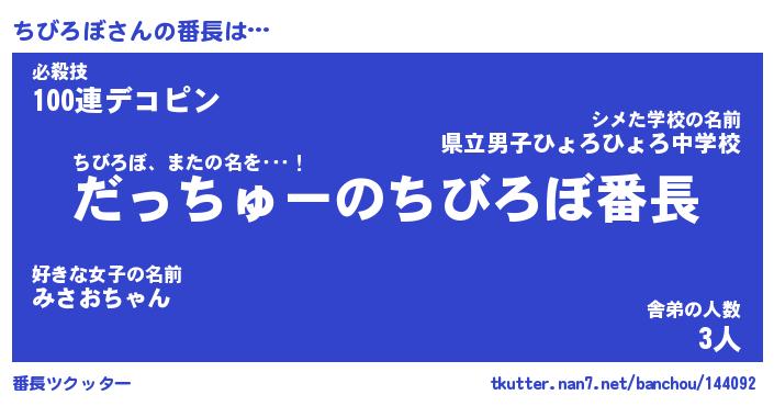 | 意味不明あだ名 | 『ペロリンちびろぼ』『永久保存ちびろぼ』 |