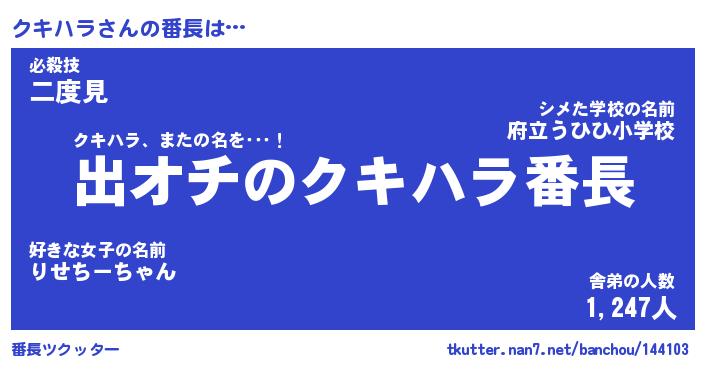 | 2回繰り返すあだ名 | 『クキクキ』『ククキキ』『おやおや』 |