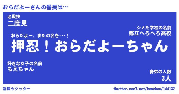 | 肩書あだ名 | 『おらだよー御曹司』『おらだよー塾長』 |
