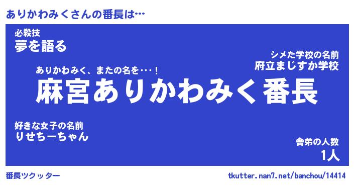 | 肩書あだ名 | 『ありかわみく社長』『ありかわみく教頭』 |