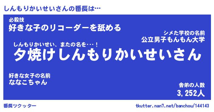 | 意味不明あだ名 | 『ペロリンしんもりかいせい』 |