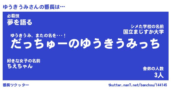 | 伝説のあだ名 | 『伝説のスナイパーゆうきうみ』 |