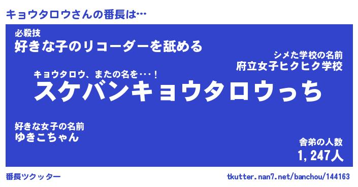 | 意味不明あだ名 | 『ペロリンキョウタロウ』 |
