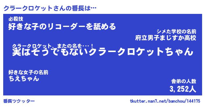 | 意味不明あだ名 | 『ペロリンクラークロケット』 |
