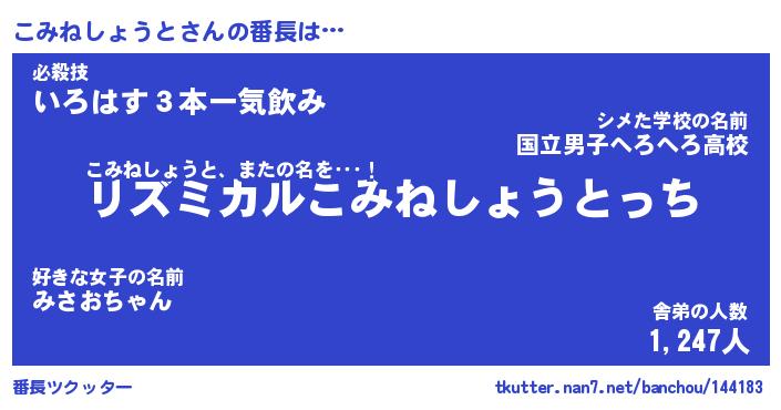 | 意味不明あだ名 | 『ペロリンこみねしょうと』 |