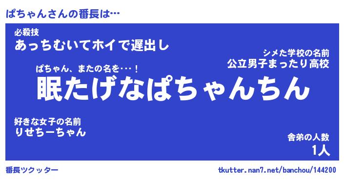 | 肩書あだ名 | 『ぱちゃん店長』『ぱちゃん大統領』 |