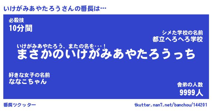 | 伝説のあだ名 | 『伝説のスナイパーいけがみあやたろう』 |