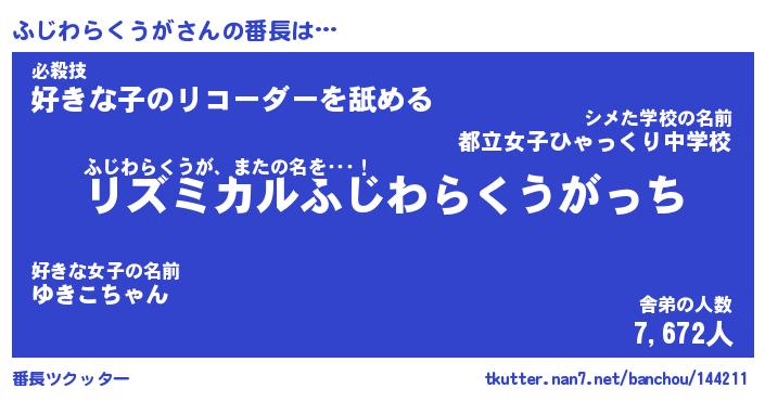 | ヘコむあだ名 | 『ふじにゅー』『つくし』 |