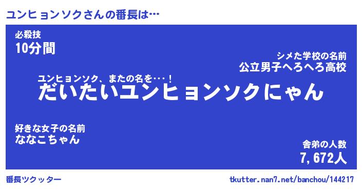 | 男性向けラノベタイトル風あだ名 | 『ユンヒョンソクの憂鬱』 |