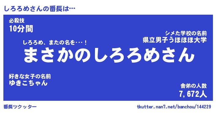 | 肩書あだ名 | 『しろろめ店長』『しろろめ総理大臣』 |
