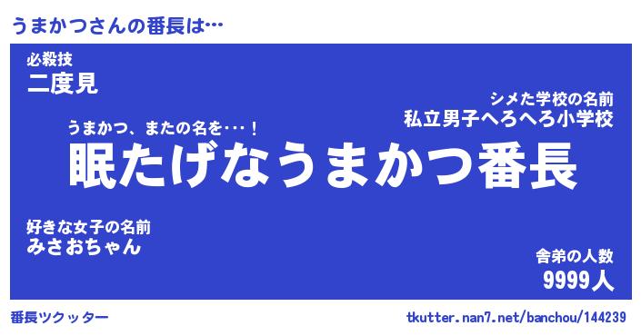 | 意味不明あだ名 | 『ペロリンうまかつ』『永久保存うまかつ』 |