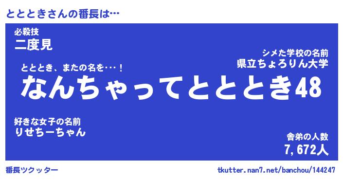 | 肩書あだ名 | 『とととき店長』『とととき総理大臣』 |
